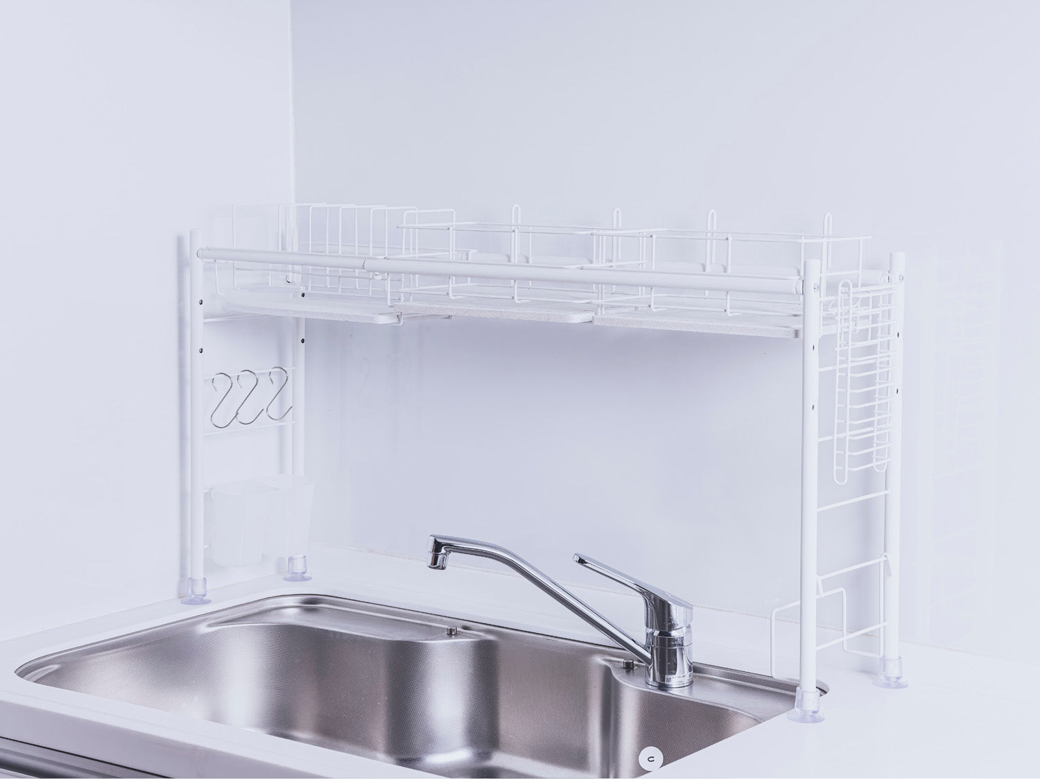 シンク上水切りラック スリムタイプ ホワイト(白)スチール仕様 【吸水モイストレー】